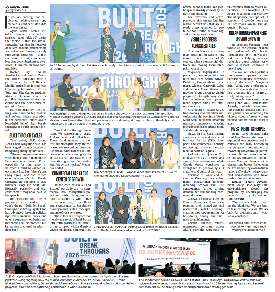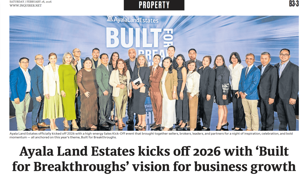 Ayala Land Estates opened 2026 with renewed energy and strategic clarity, as highlighted in Inquirer Property’s recent feature on the company’s Sales Kick Off and Ambassador Awards.